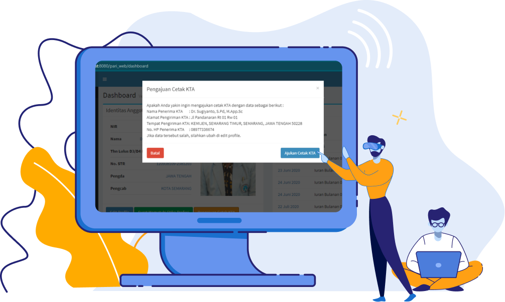Harap pastikan bahwa Anda sudah mengisi alamat tujuan pengiriman KTA dan nama kelurahan tujuan pengiriman KTA.